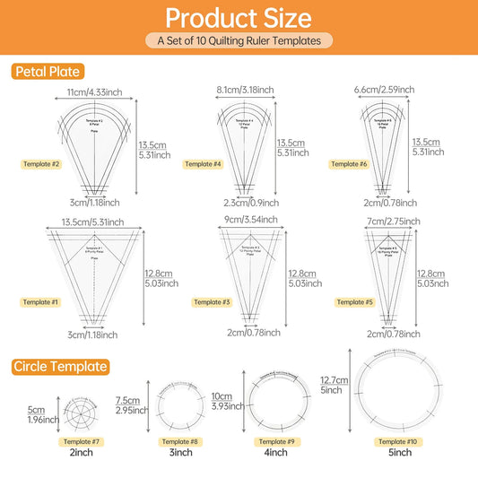 PetaliquePro – 10PCS Acrylic Quilting Template & Ruler Set