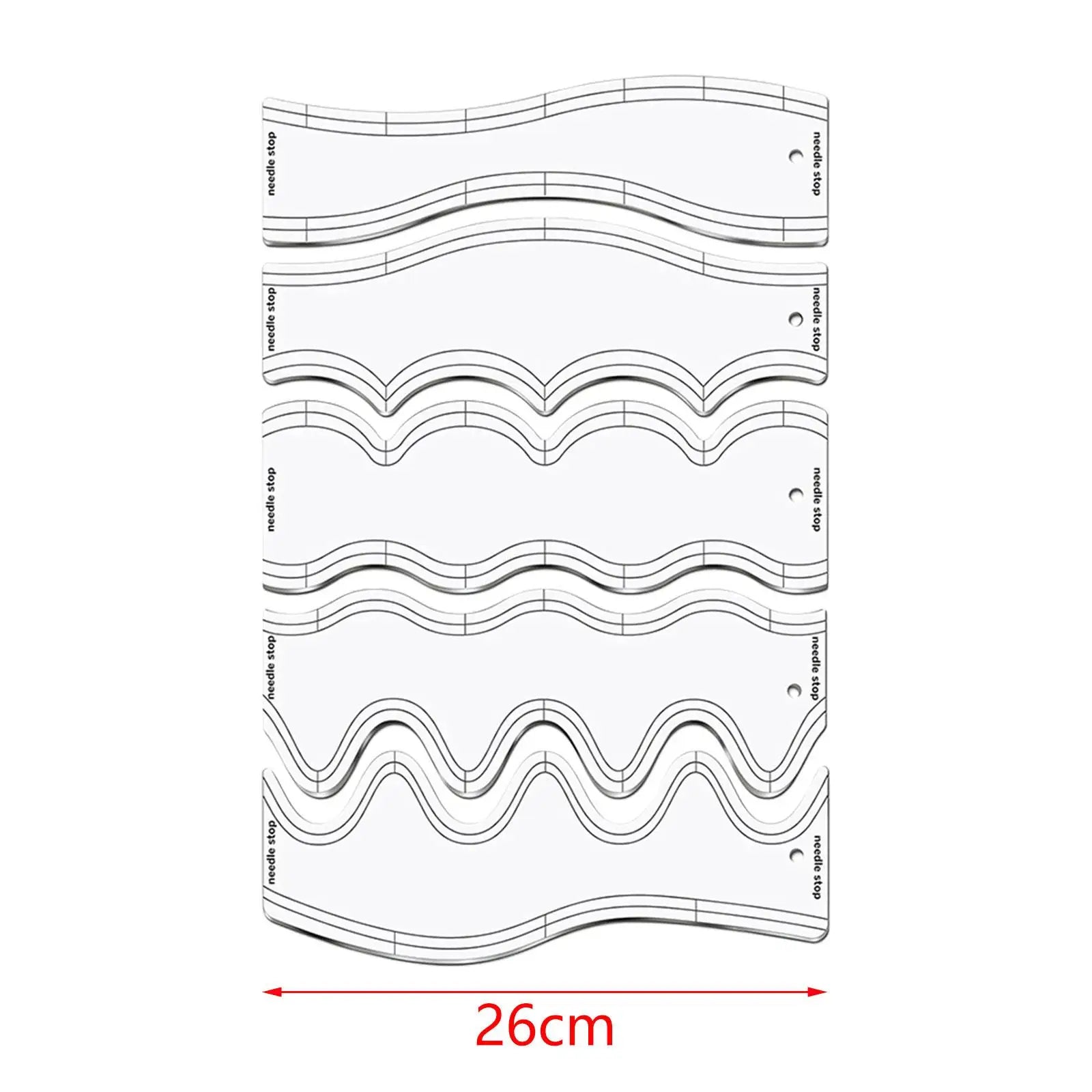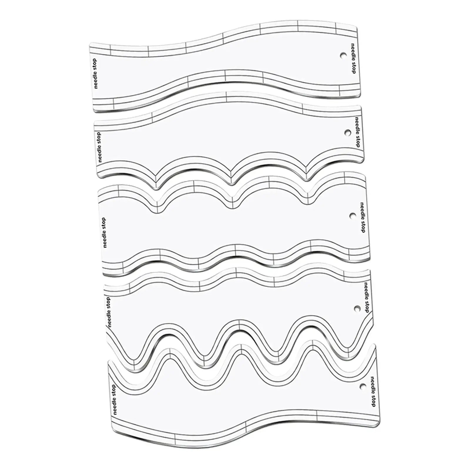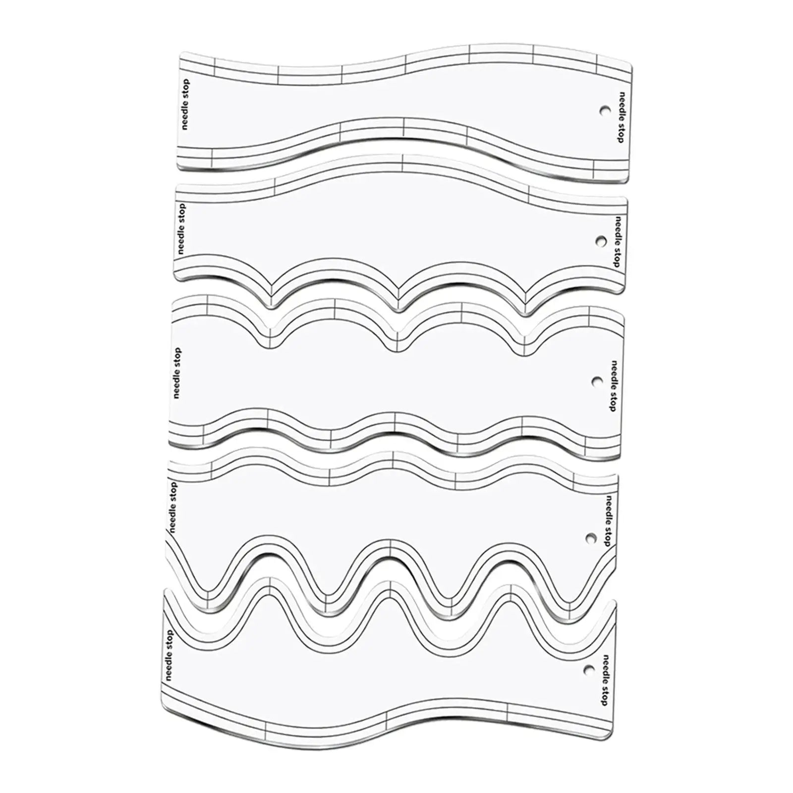 5-Piece Quilting Ruler Set includes multiple wave patterns for varied and creative quilting designs.