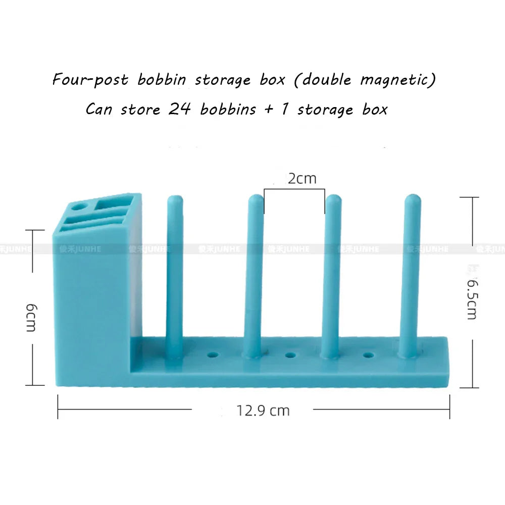 Four-Post Thread Spool Rack organizes multiple spools for quick access during sewing